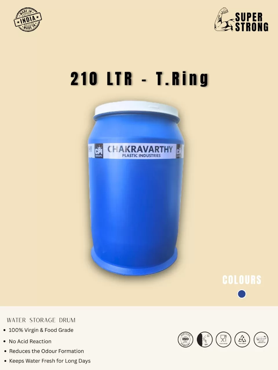 Pickle storage requires special care to maintain taste, freshness, and hygiene over long periods. Our pickles storage drums are specially designed to meet the unique requirements of storing pickles safely and hygienically. Manufactured using 100% virgin, food-grade plastic, these drums ensure that the flavor, aroma, and quality of pickles remain intact without any chemical reaction.